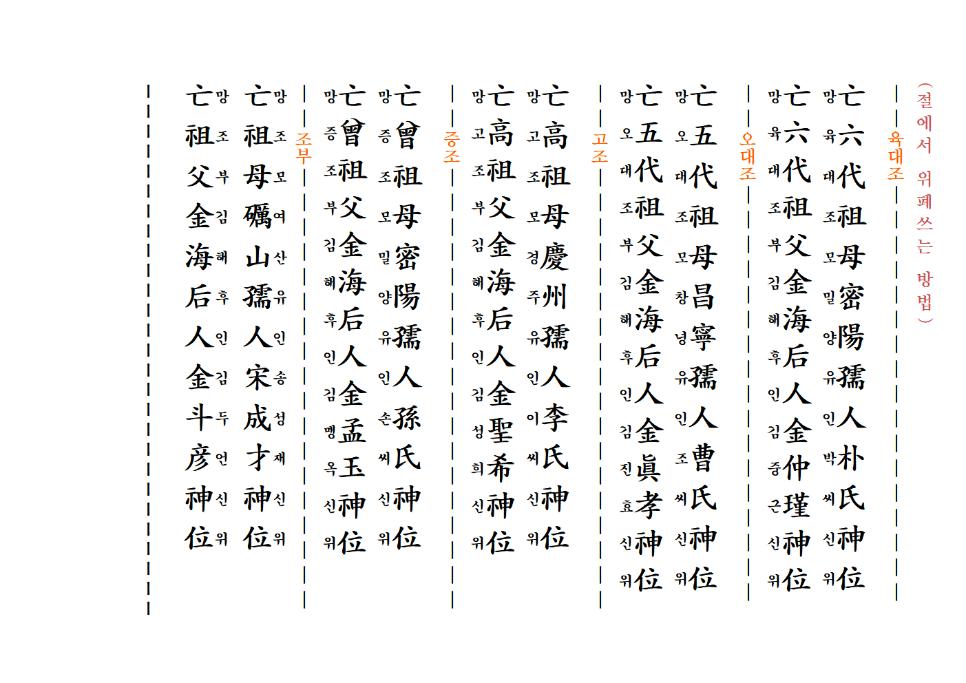 신위의 오른쪽은 동쪽, 신위의 왼쪽은 서쪽이다.